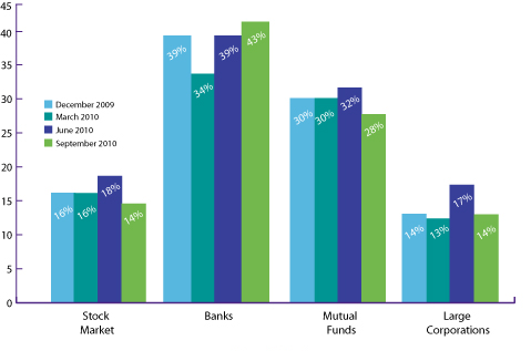 Percentage of people trusting various components that comprise the Financial Trust Index