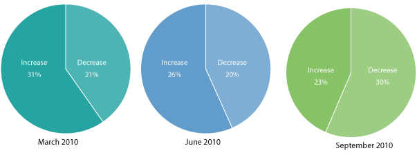 One possible reason for this increase is the fear that unemployment will rise. In September, 24 percent of survey respondents felt unemployment will rise further, compared with 20 percent in the June survey.