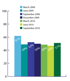 Sentiment about real estate pricing and strategic defaults were also examined in the quarterly study, which found that positive housing trends dating from December 2008 have come to a screeching halt. The public’s expectations for housing prices in the next 12 months worsened, and according to the research, the proportion of respondents who foresee a decline in housing prices has risen from 20 to 30 percent.