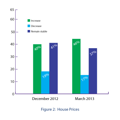 Respondents were asked, "In the next 12 months, do you think house prices in your area will…?"